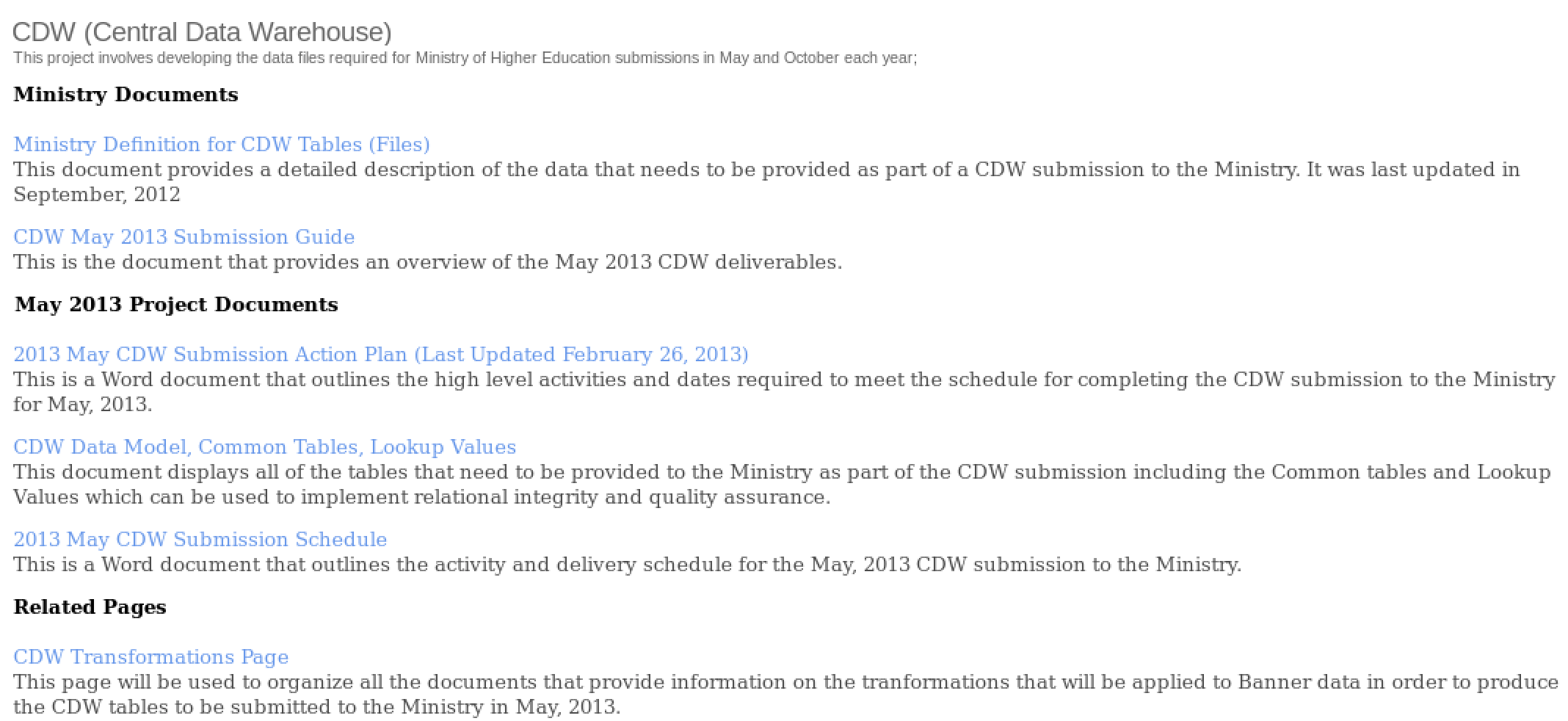 Managing Projects in Sharepoint - Step 4 - Example Project Page